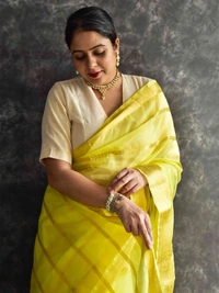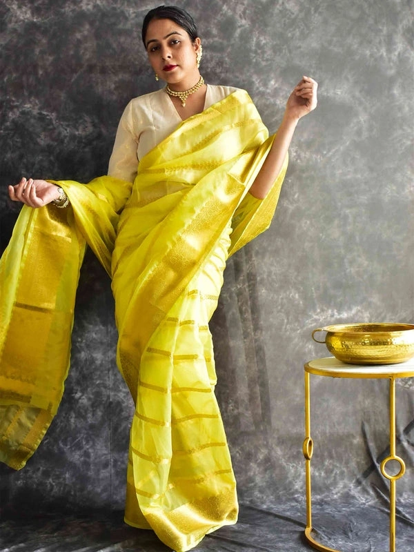 Kora Organja Saree Blouse: Separate Blouse PiecePattern: Zari WovenBlouse Pattern: Same as BorderFree Size (Saree Length Size: 5.5 m, Blouse Length Size: 0.9 m)