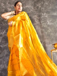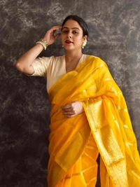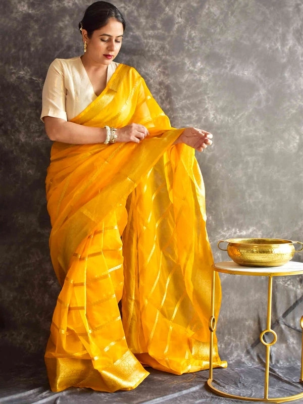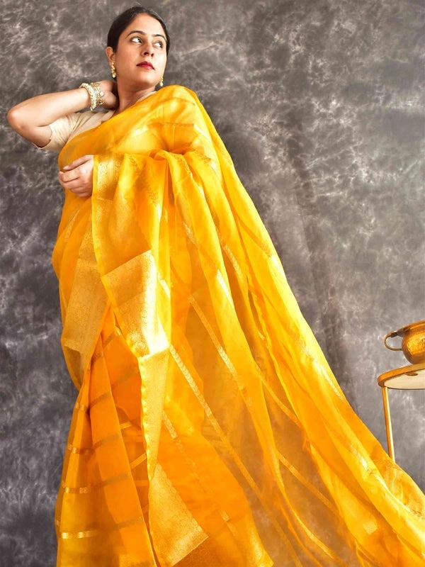 Kora Organja Saree Blouse: Separate Blouse PiecePattern: Zari WovenBlouse Pattern: Same as BorderFree Size (Saree Length Size: 5.5 m, Blouse Length Size: 0.9 m)