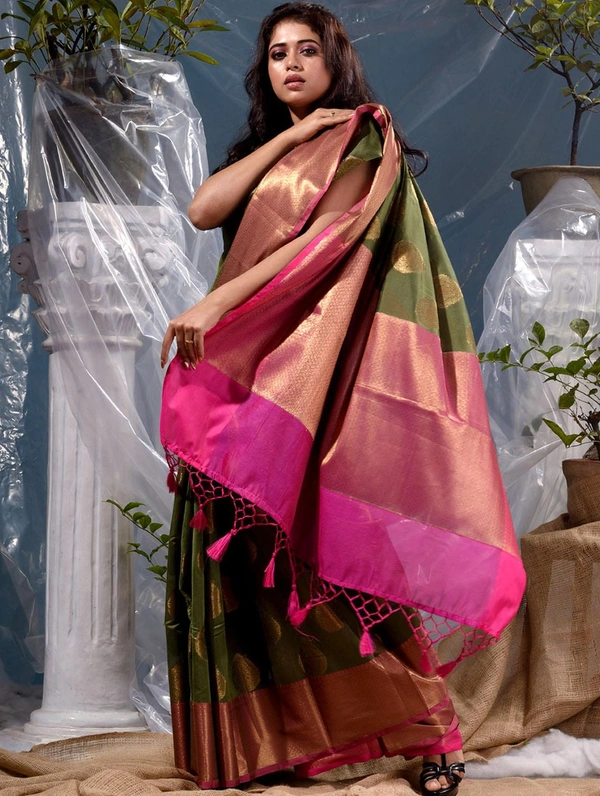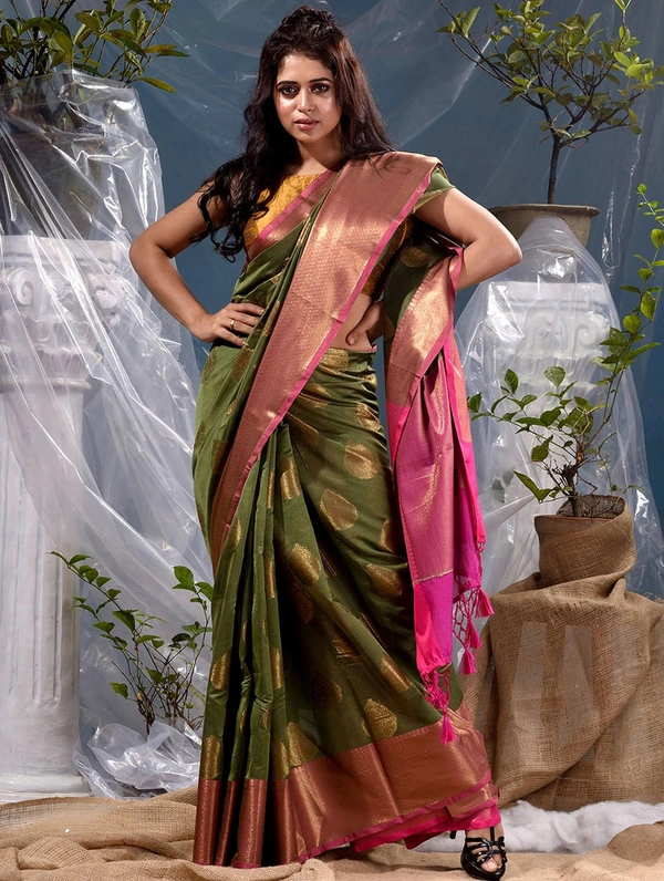 Pan Buta Saree Saree Fabric: CottonBlouse: Separate Blouse PieceBlouse Fabric: CottonPattern: Zari WovenBlouse Pattern: Same as BorderNet Quantity (N): SingleSizes: Free Size (Saree Length Size: 5.5 m, Blouse Length Size: 0.9 m)