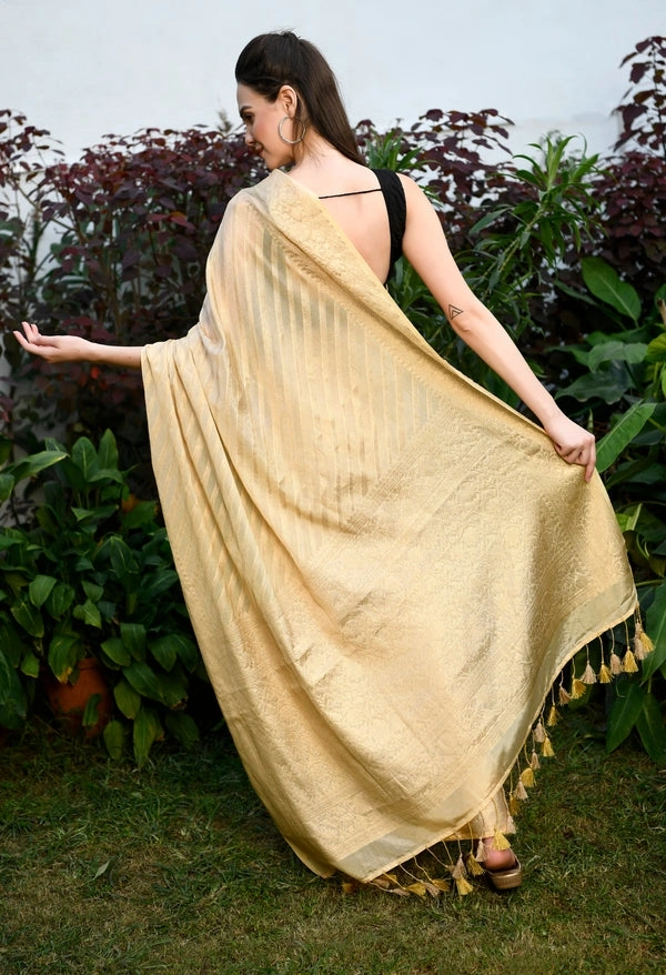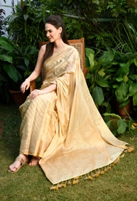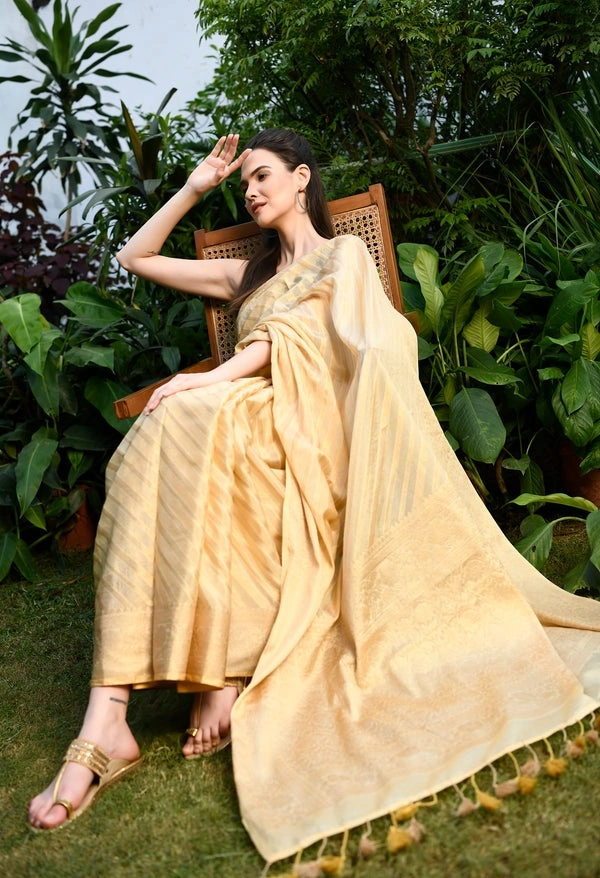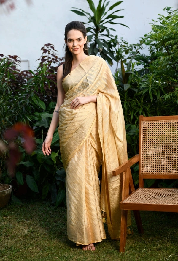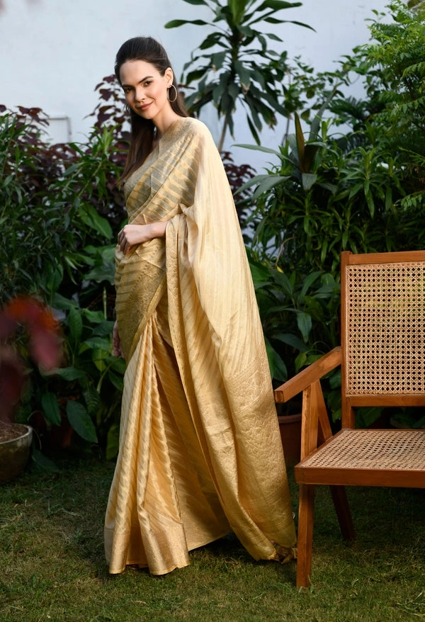 Semi Gaergate Saree Blouse: Separate Blouse Piece: Zari WovenBlouse Pattern: Same as BorderNet Quantity (N): SingleSizes: Free Size (Saree Length Size: 5.5 m, Blouse Length Size: 0.9 m)