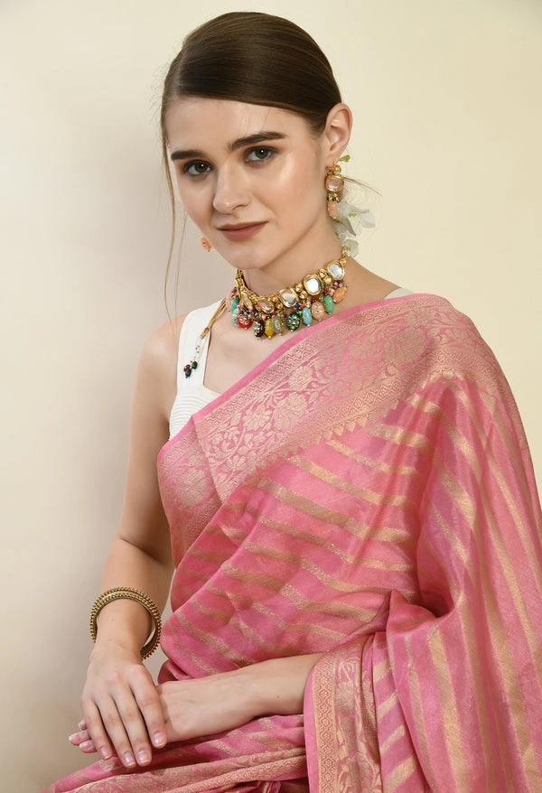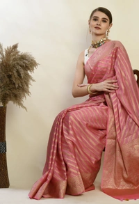 Semi Gaergate Saree Blouse: Separate Blouse PiecePattern: Zari WovenBlouse Pattern: Same as BorderNet Quantity (N): SingleSizes: Free Size (Saree Length Size: 5.5 m, Blouse Length Size: 0.9 m)