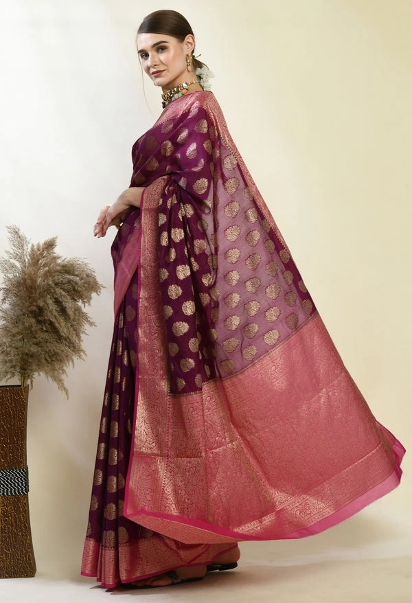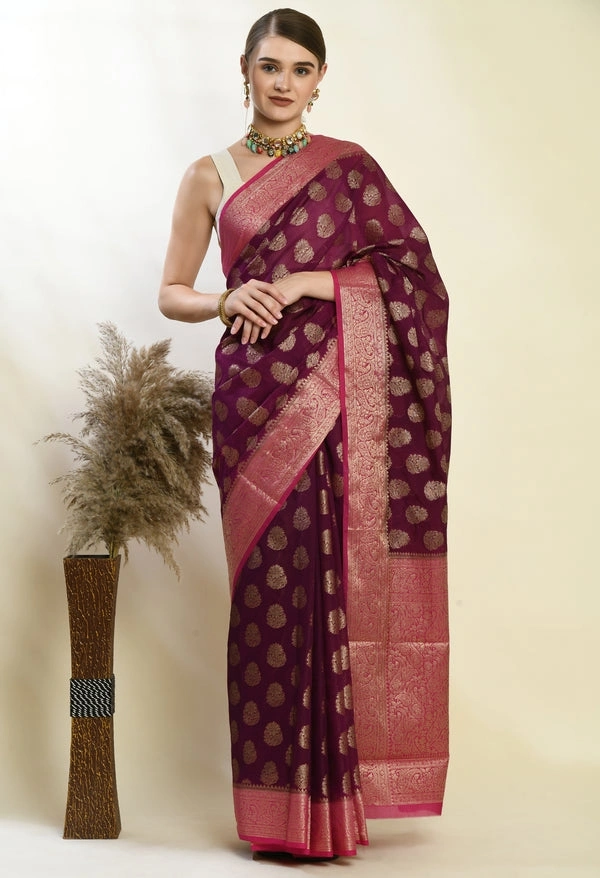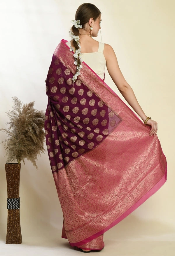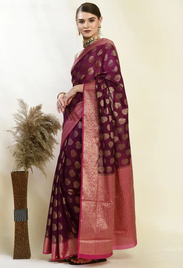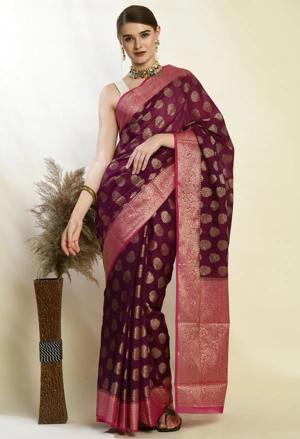 Soft Banarasi Kora Silk Saree with Copper Zari Stripes